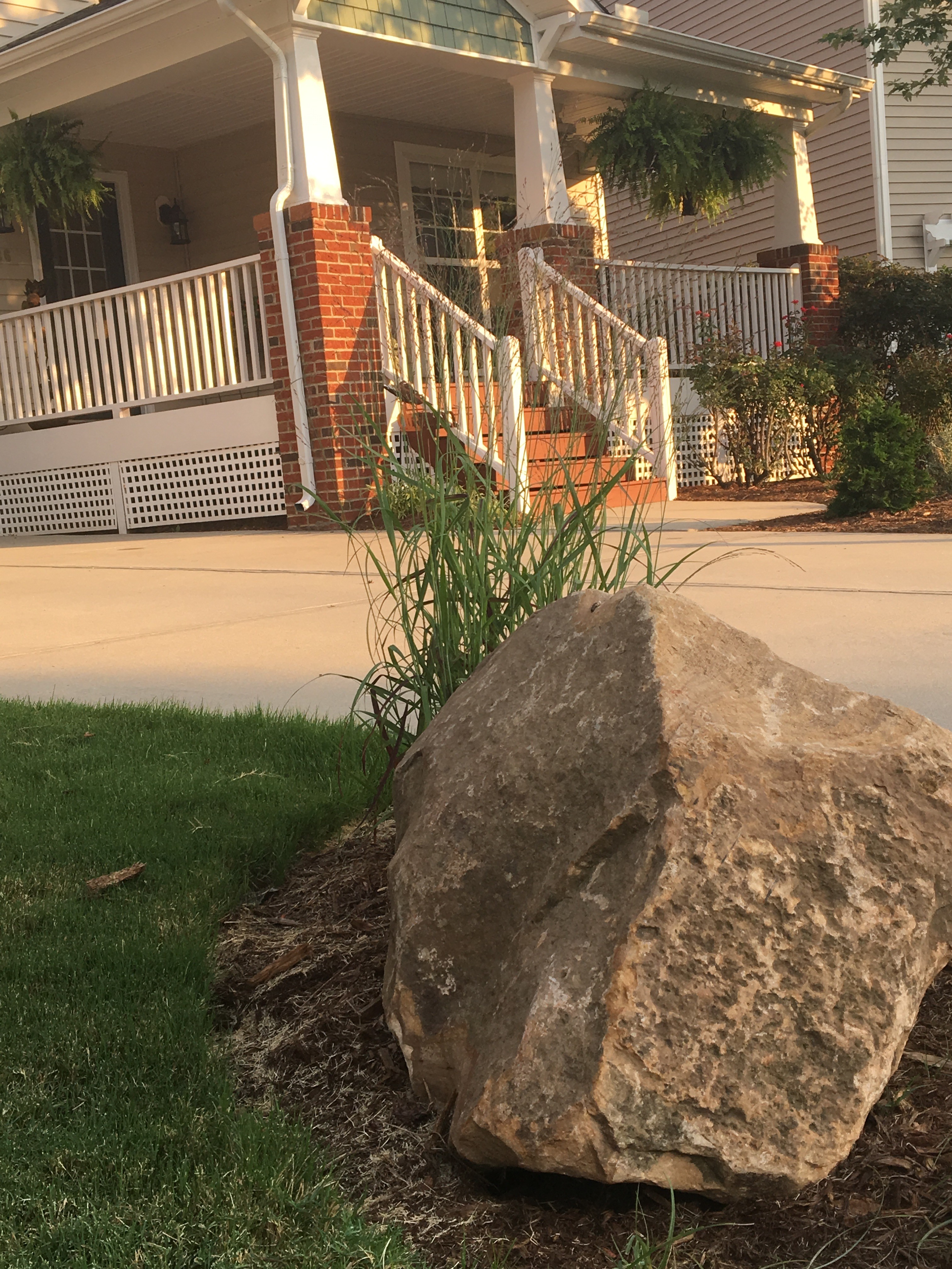I quickly hired a landscaper to tackle my problem. I asked if a “big rock” would look good in the corner of my property. He said “Yes!” So, a beautiful, decorative boulder along with some ornamental grasses were strategically placed to disperse the arrow chi from the road.